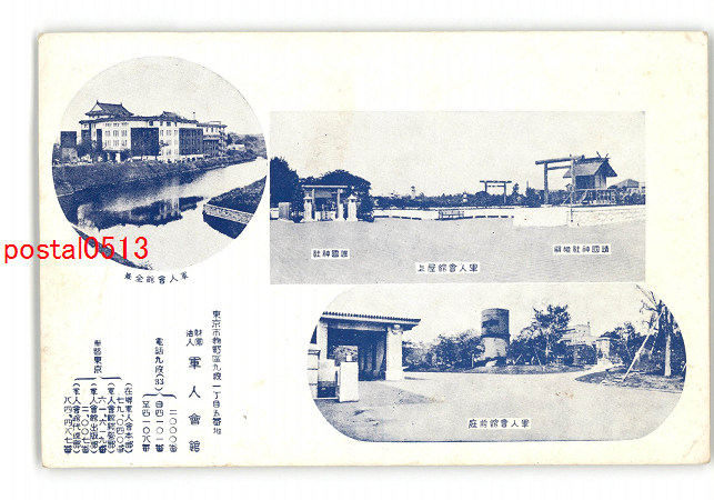 東京 広告絵葉書 軍人会館 全景 庭 屋上 *傷み有り