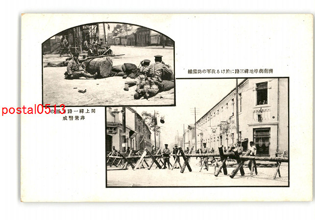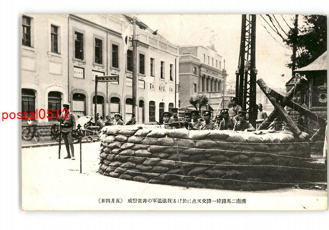 満州 済南事件 済南二馬路緯一路交叉点に於ける我派遣軍の非常警戒 5月4日 *傷み有り