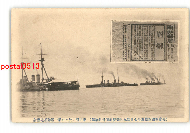 東京 先帝明治45年7月10日御発病同30日崩御 東京湾に於ける第一艦隊吊砲発射 *傷み有り