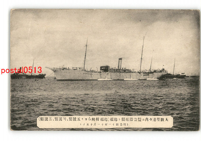 大阪築港内繋留潜航艇と母艦 明治41年11月15日 *傷み有り