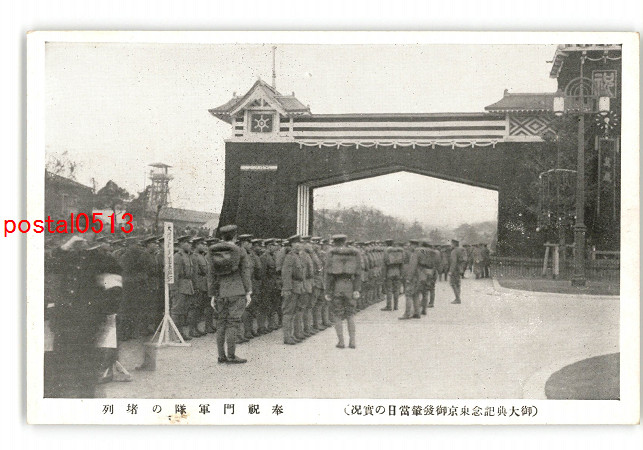 東京 御大典記念東京御発輦当日の実況 奉祝門輦軍隊の堵列 *傷み有り