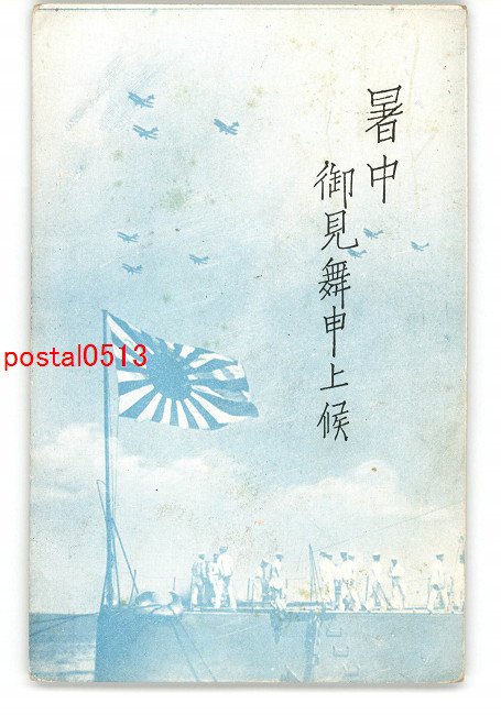 軍隊用暑中見舞い絵葉書 軍艦甲板 *エンタイア *傷み有り