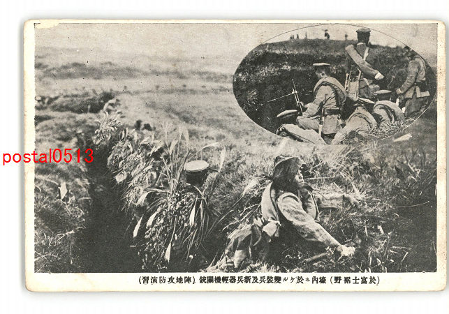 静岡 於富士裾野 壕内に於ける変装兵及新兵器軽機関銃 陣地攻防演習 *傷み有り