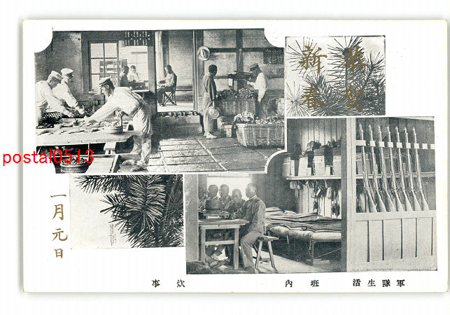 軍隊用年賀状 連隊名不明 射撃演習 *傷み有り