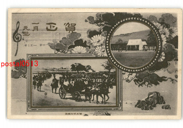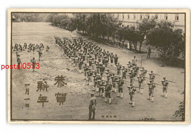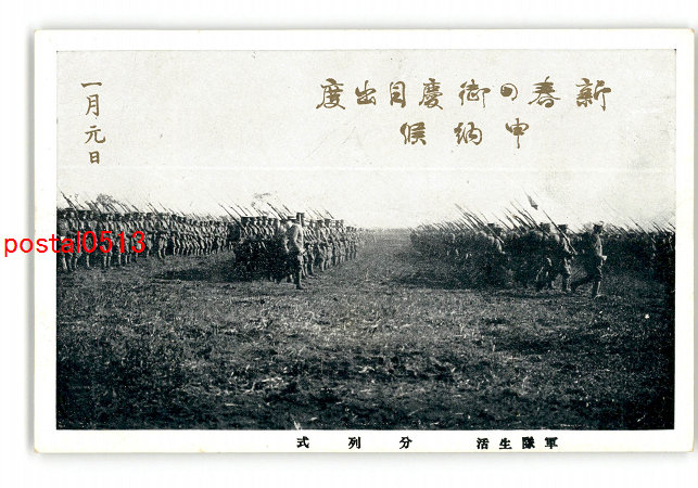 軍隊用年賀状 連隊名不明 観兵式 *傷み有り