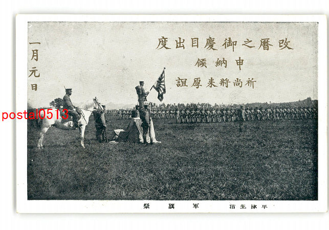 軍隊用年賀状 連隊名不明 軍旗拝受皇居出門 *傷み有り
