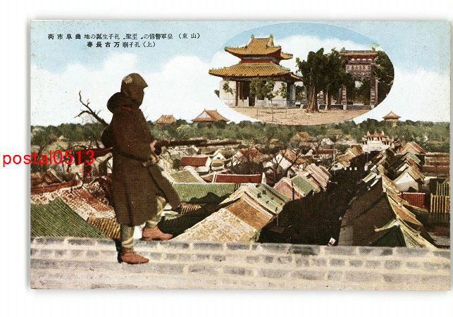満州 山東 皇軍警備の至聖 孔子生誕の地 曲阜市街 上 孔子廟 万古長春 *傷み有り