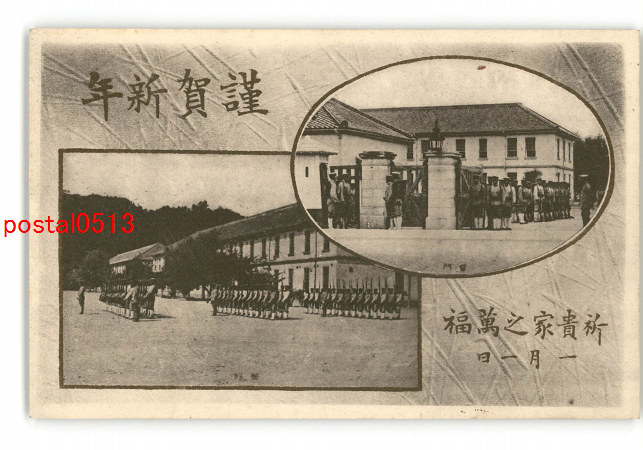 軍隊用年賀状 連隊名不明 営門 整列 *傷み有り