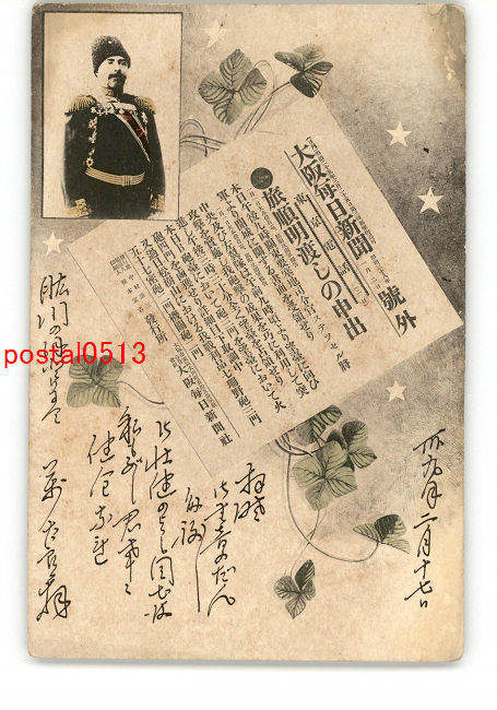 資料絵葉書 大阪毎日新聞号外 旅順明渡しの申出 *エンタイア *傷み有り