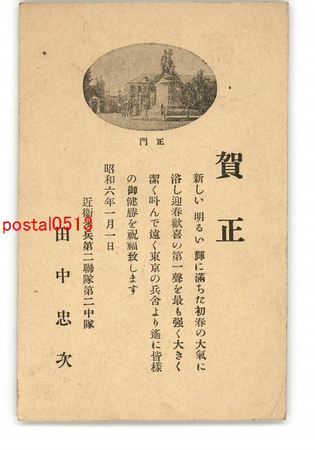 近衛歩兵第2連隊用昭和6年年賀状絵葉書 *エンタイア *傷み有り