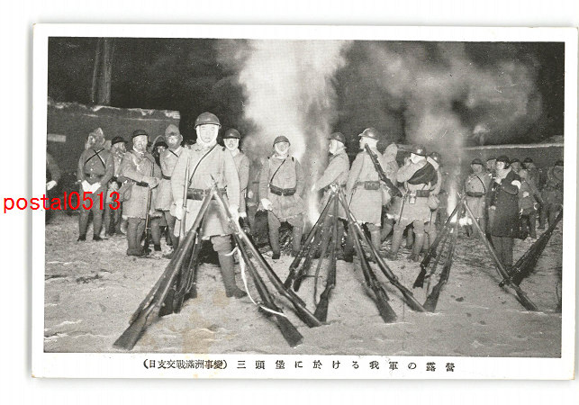 満州 日支交戦満洲事変 三頭堡に於ける我軍の露営 *傷み有り