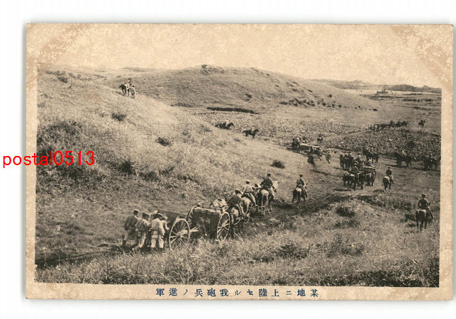 某地に上陸せる我砲兵の進軍 *傷み有り