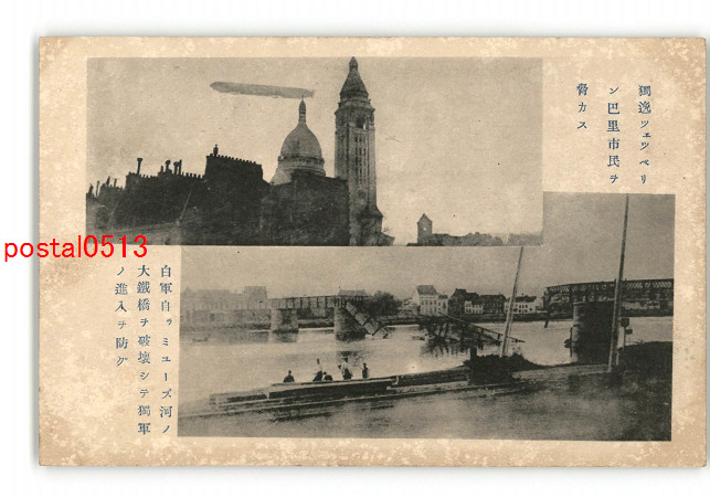 ツェツベリン巴里市民を脅かす 白軍自らミューズ河の大鉄橋を破壊して独軍の進入を防ぐ *傷み有り