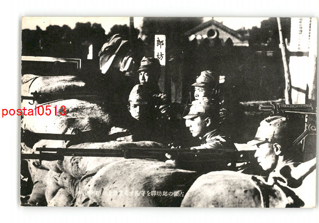 満州 占領の郎坊駅を守備する我勇士 *傷み有り