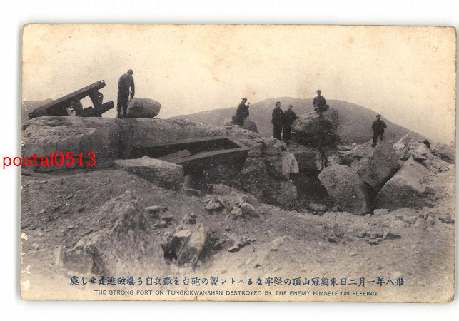 満州 38年1月2日東鶏冠山頂の堅牢なるペトン製の砲台を敵兵自ら爆破逃走せし所 *エンタイア *傷み有り