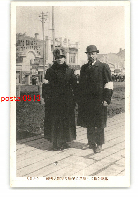 ロシア シベリア出兵? 赤章を捨て白腕章に早変りの露人夫婦 6日 *傷み有り