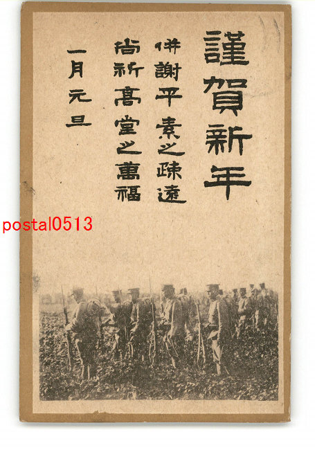 年賀状アート絵葉書 軍隊食事 *傷み有り