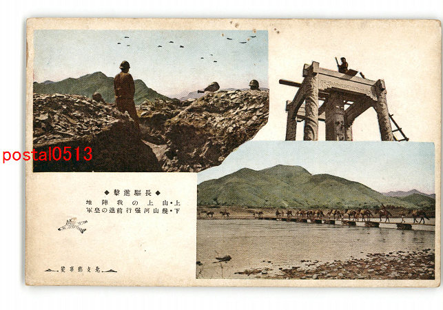 満州 北支那事変 長駆進撃 上 山上の我陣地 下 幾山河強行前進の皇軍 *傷み有り