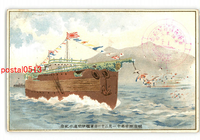 明治40年11月21日軍艦伊吹進水紀念 *エンタイア *傷み有り