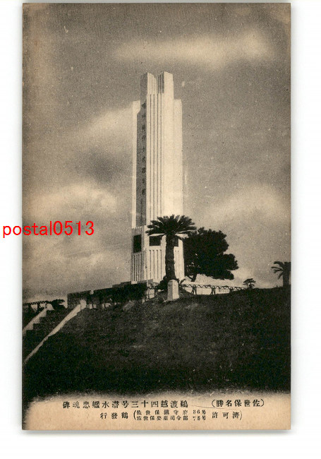 長崎 佐世保名勝 鵜渡越43号潜水艦忠魂碑 *傷み有り