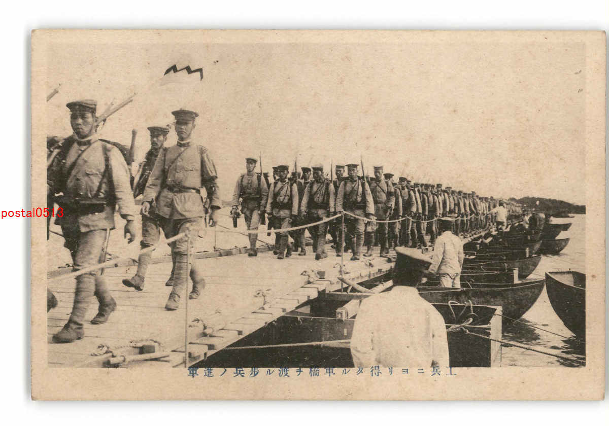 軍隊 工兵により得たる軍橋を渡る歩兵の進軍 *傷み有り