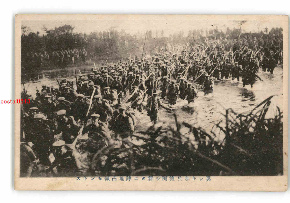 軍隊 勇しき歩兵渡河し新たに陣地占領せんとす *傷み有り