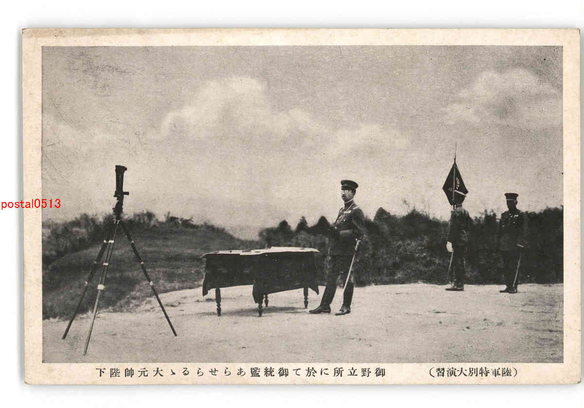 陸軍特別大演習 御野立所に於て御統監あらせらるる大元師陛下 *傷み有り