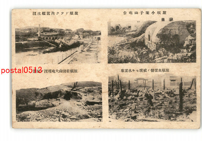 満州 旅順小案子山砲台 魚雷営の破壊せる水雷庫 ドック内露艦沈没 *傷み有り