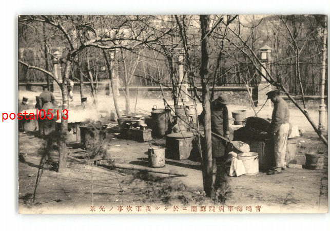 満州 青島海軍病院庭園に於ける我軍炊事の光景 *傷み有り