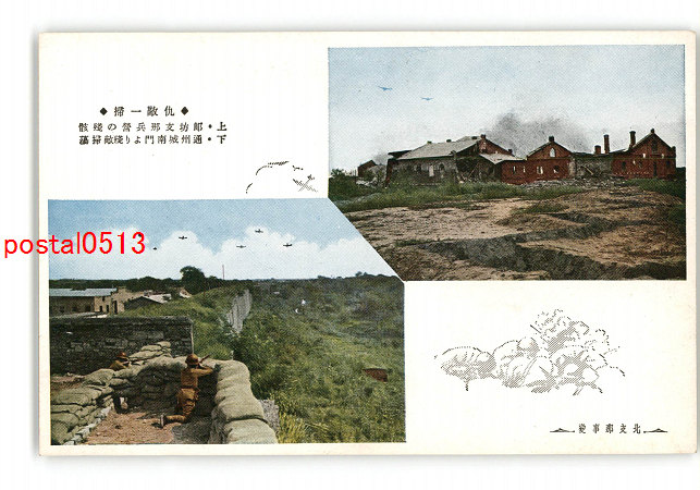 満州 郎坊支那兵営の残骸 通州城南門より残敵掃蕩 北支那事変 *傷み有り