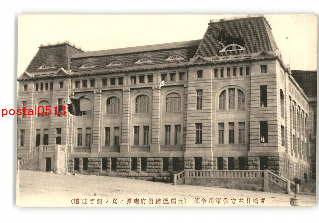 満州 青島日本守備軍司令部 元独逸総督砲弾の為め側面破壌 *傷み有り