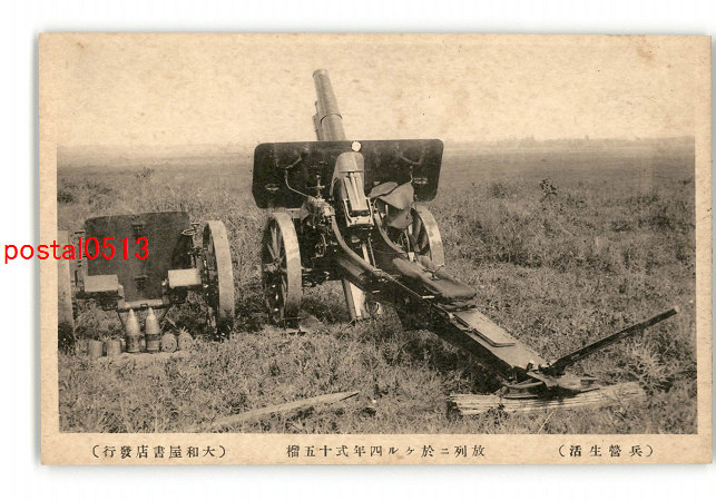 兵営生活 放列に於ける四年式15榴 *傷み有り