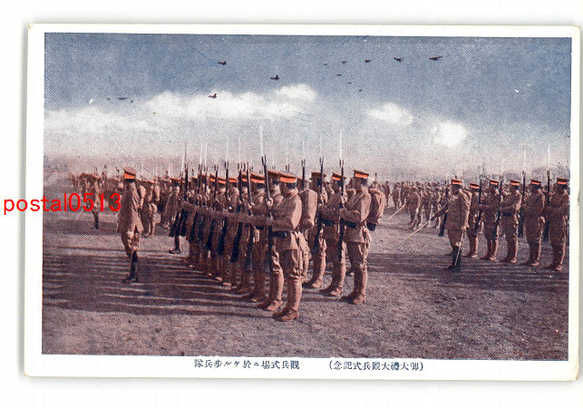御大禮大観兵式記念 観兵式場に於ける歩兵隊 *傷み有り