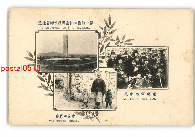 満州 旅順 両将軍の会見 会見の民家 第一師団の紀念碑並水師営遠望 *傷み有り