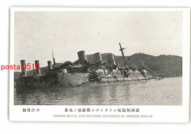 満州 露国戦闘艦レトウイザン号破壌の光景 *傷み有り