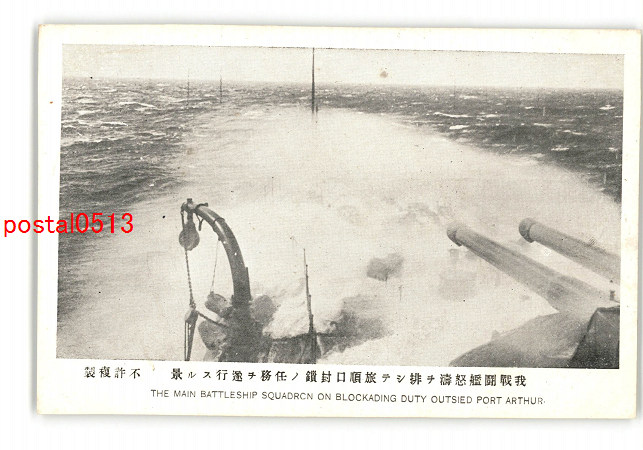 満州 我戦闘艦怒涛を排して旅順口封鎖の任務を遂行する景 *傷み有り