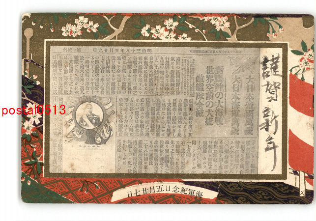 海軍記念 当時の新聞とアート絵葉書 *傷み有り