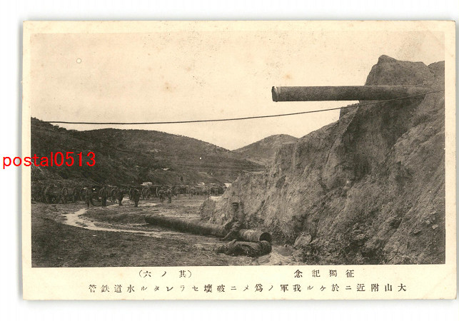 満州 征独記念 大山附近我軍の為めに破壊せられたる水道鉄管 *傷み有り