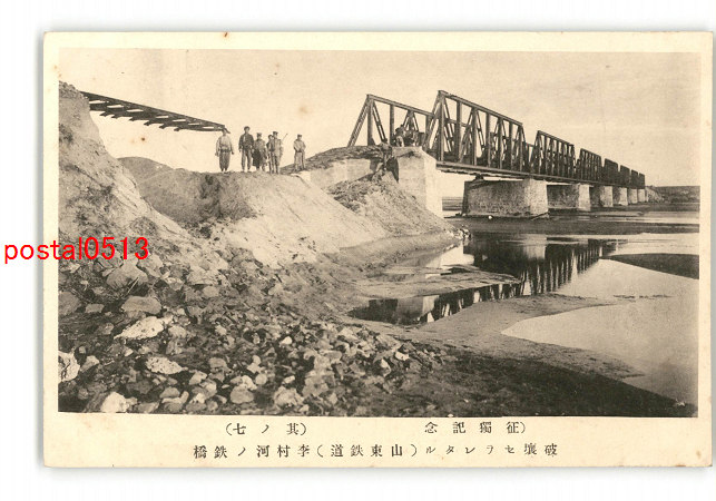 満州 征独記念 破壊せられたる 山東鉄道 李村河の鉄橋 *傷み有り