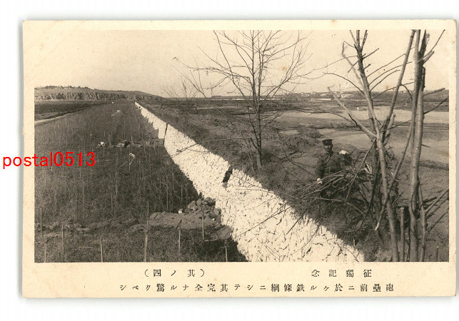 満州 征独記念 砲壘前の鉄条綱にしてその完全なる驚くべし *傷み有り
