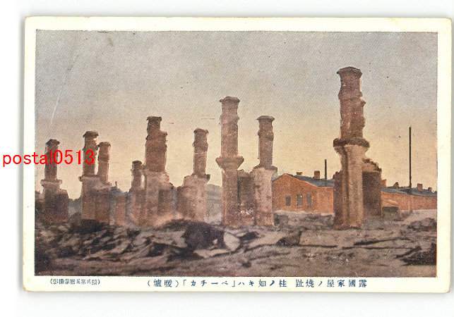 ロシア 尼港事件 露国家屋の焼跡 柱の如きはベーチカ 暖炉 *傷み有り