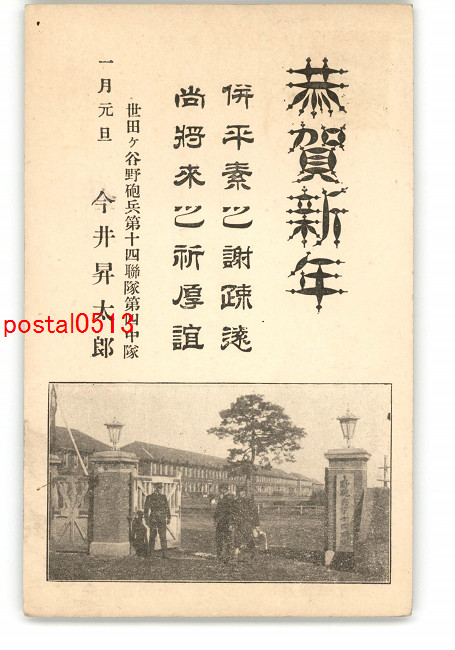 東京 野砲兵第14連隊 年賀状 実逓便エンタイア *傷み有り