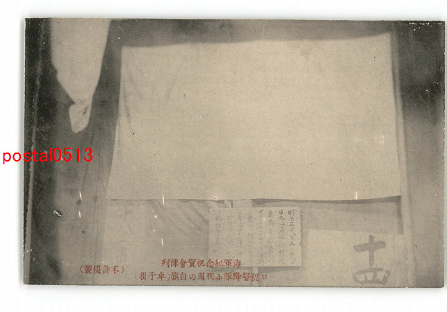 海軍紀念祝賀会陳列 口提督降服小代用の白旗 卓子■ *傷み有り