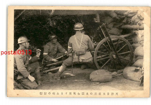 満州 天津日本租界の士■を利用する山砲の射撃 *傷み有り