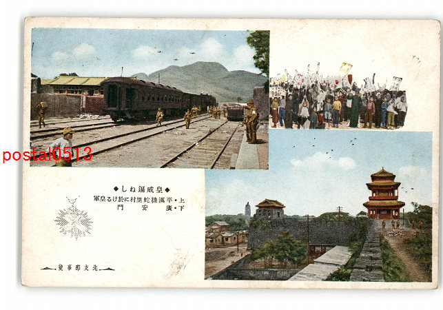 満州 皇威遍ねし 上 平漢線蛇里村に於ける皇軍 下 広安門 支那事変 *傷み有り