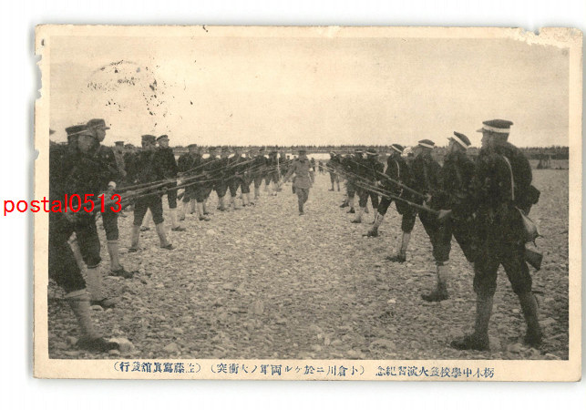 栃木 栃木中学校発火演習紀念 小倉川に於ける両軍の大衝突 実逓便エンタイア *傷み有り