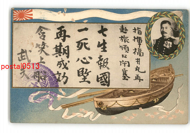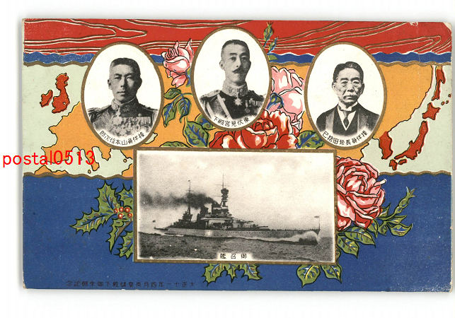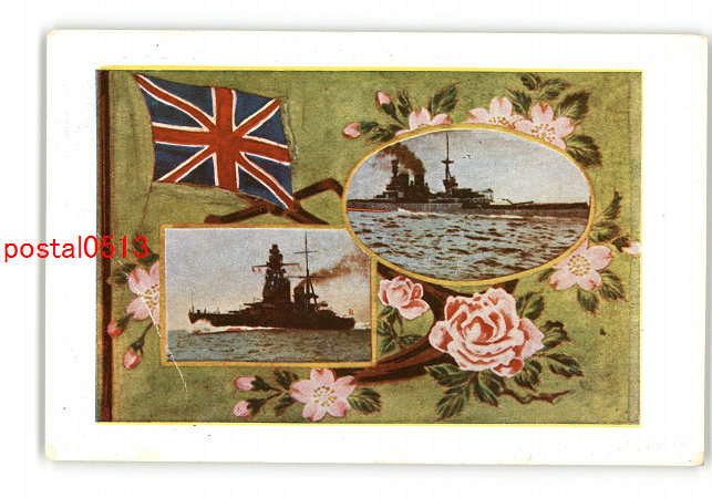 軍艦とバラアート絵葉書 *傷み有り