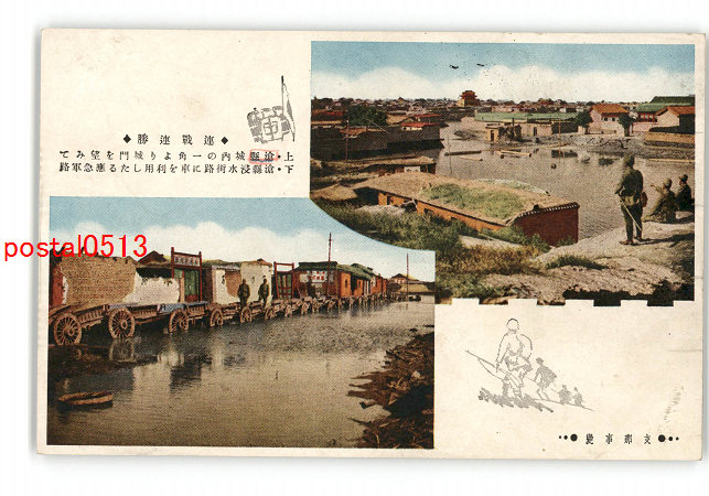 満州 支那事変 浸水街路の応急軍路 他 *傷み有り