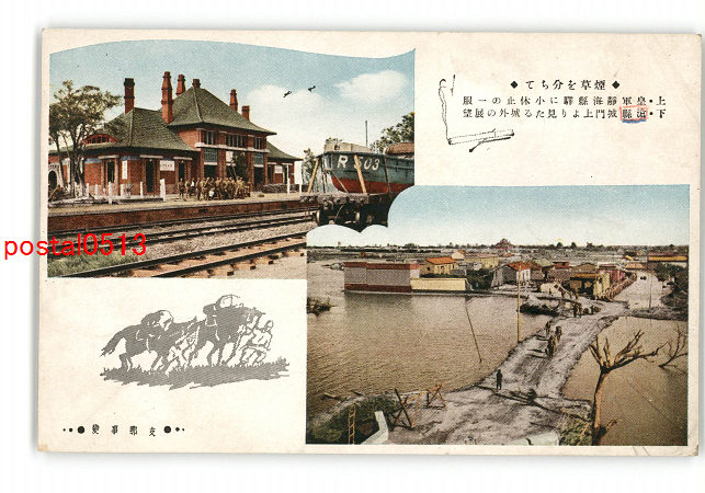 満州 支那事変 静海縣駅の皇軍小休止 *傷み有り