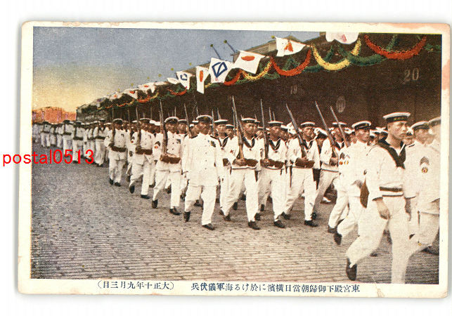 神奈川 東宮殿下御蛙帰朝当日横浜に於ける海軍儀伏兵 大正10年 *傷み有り